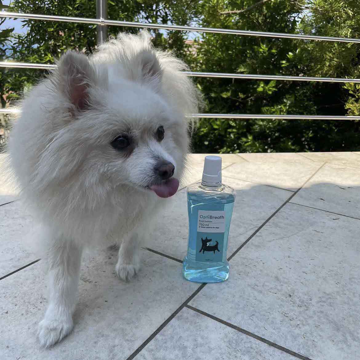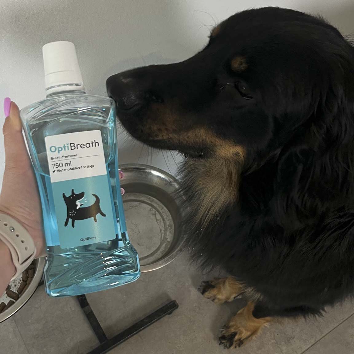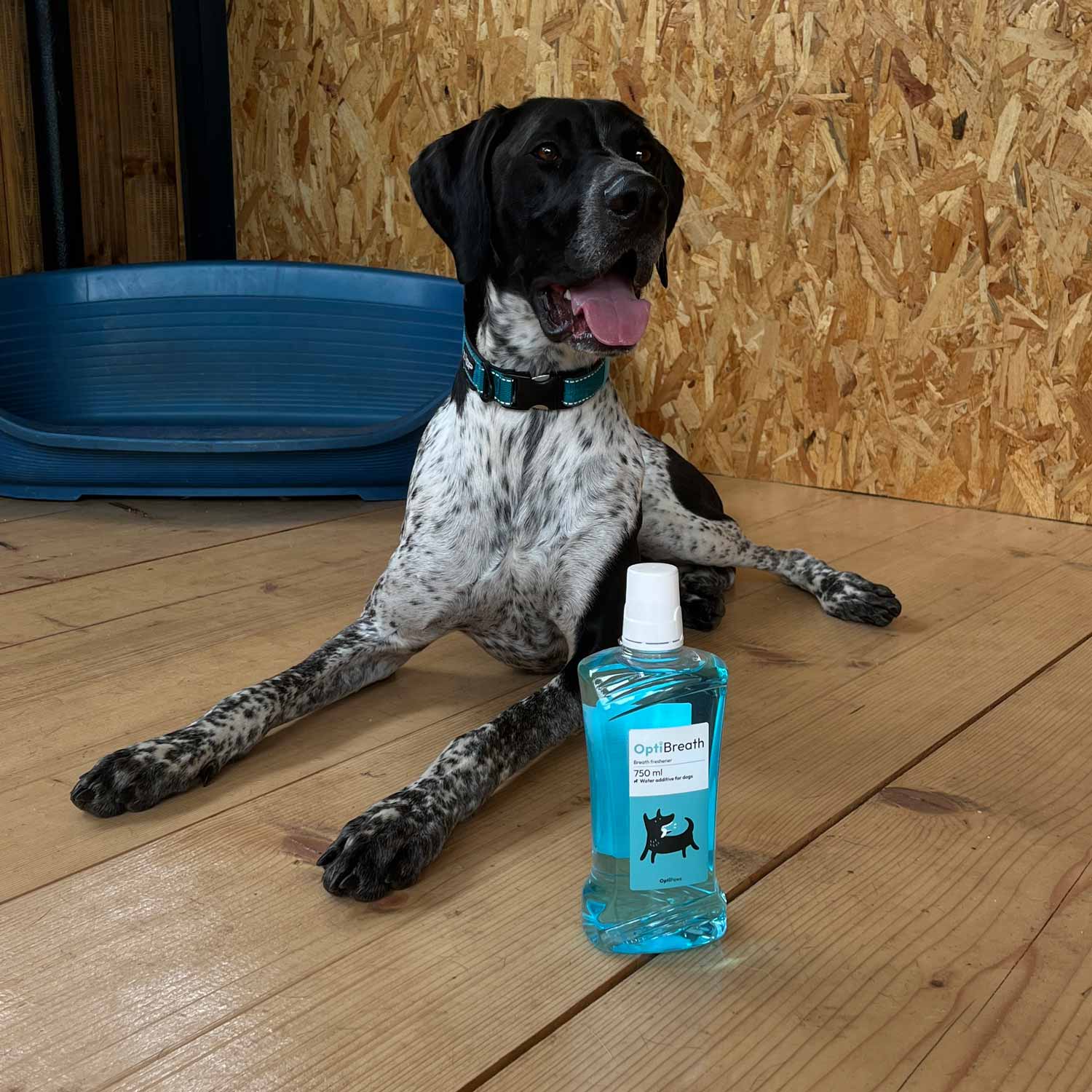 OptiBreath is a water additive for dogs, perfect to maintain their daily oral hygiene.
